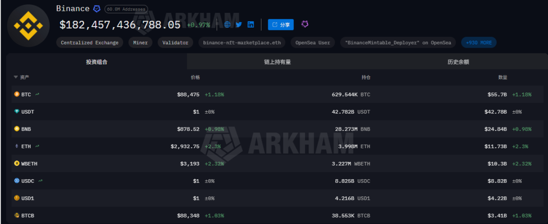 据 Arkham 数据,币安已持有约 35.27 亿 USD1,估算基础周收益率约 10000000/3526855732.88=0.2835%,年化收益率约 0.2835%*52=14.742%