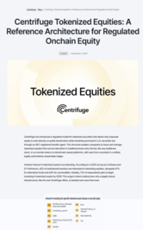[5] Centrifuge. (2025, December 5). Centrifuge tokenized equities: A reference architecture for regulated onchain equity. Centrifuge. https://centrifuge.io/blog/centrifuge-tokenized-equities