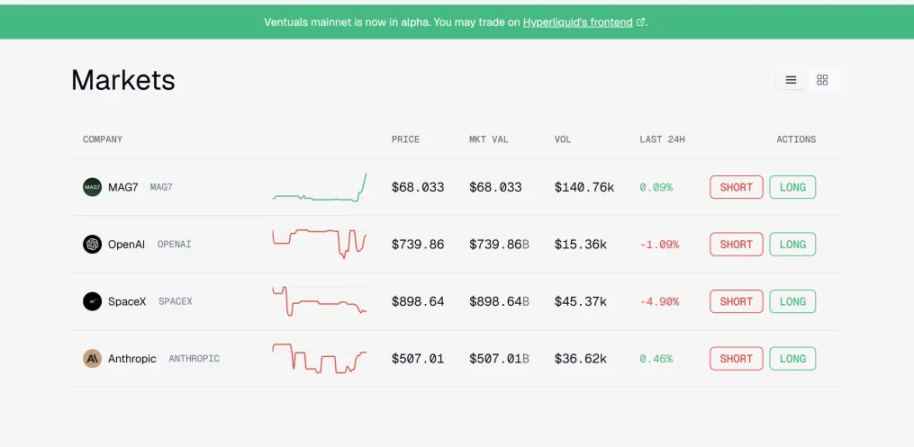 图 5:Ventuals 平台 Pre-IPO 类合约产品展示图