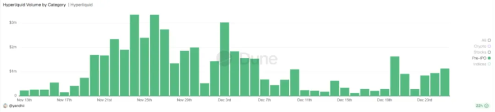图 6:Hyperliquid 平台 Pre-IPO 相关资产日交易量图(USD)