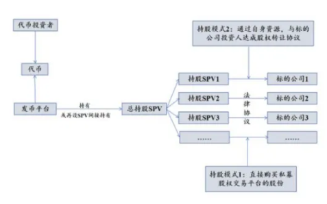SPV 模式结构为:平台设立 SPV,在传统私募二级市场受让并持有真实股权;对外销售的代币并非标的公司股权本身,而是 SPV 的权益凭证。因此投资者通常不在标的公司股东名册中,也不直接拥有治理投票权。