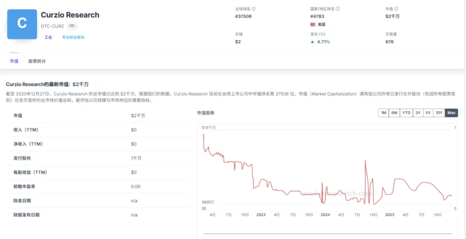 Curzio Research(CURZ)的案例说明:股权代币化后在 ATS 面向合格投资者交易,为不准备上市或无法上市的公司提供合规但有限的二级市场,以缓解股东退出压力。其交易表现也体现 ATS 薄型市场特征:发行后长期下行并在 2024 年初触底,随后高波动,呈现价差大、成交稀疏、价格发现效率偏低等特点(与公开市场的深度存在显著差异)。