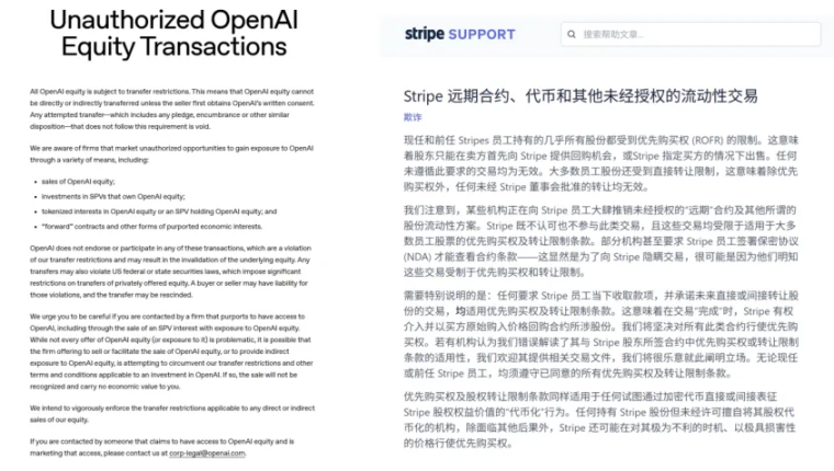 图 12:OpenAI 和 Stripe 警告股权代币化的公告图