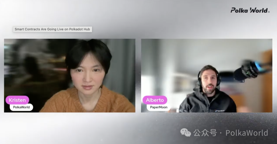 Kristen:大家好,欢迎来到 PolkaWorld 专访节目,我是 Kristen。今天和我一起的是 Papermoon 的 CEO 兼联合创始人 Alberto。Alberto,欢迎你来到节目。