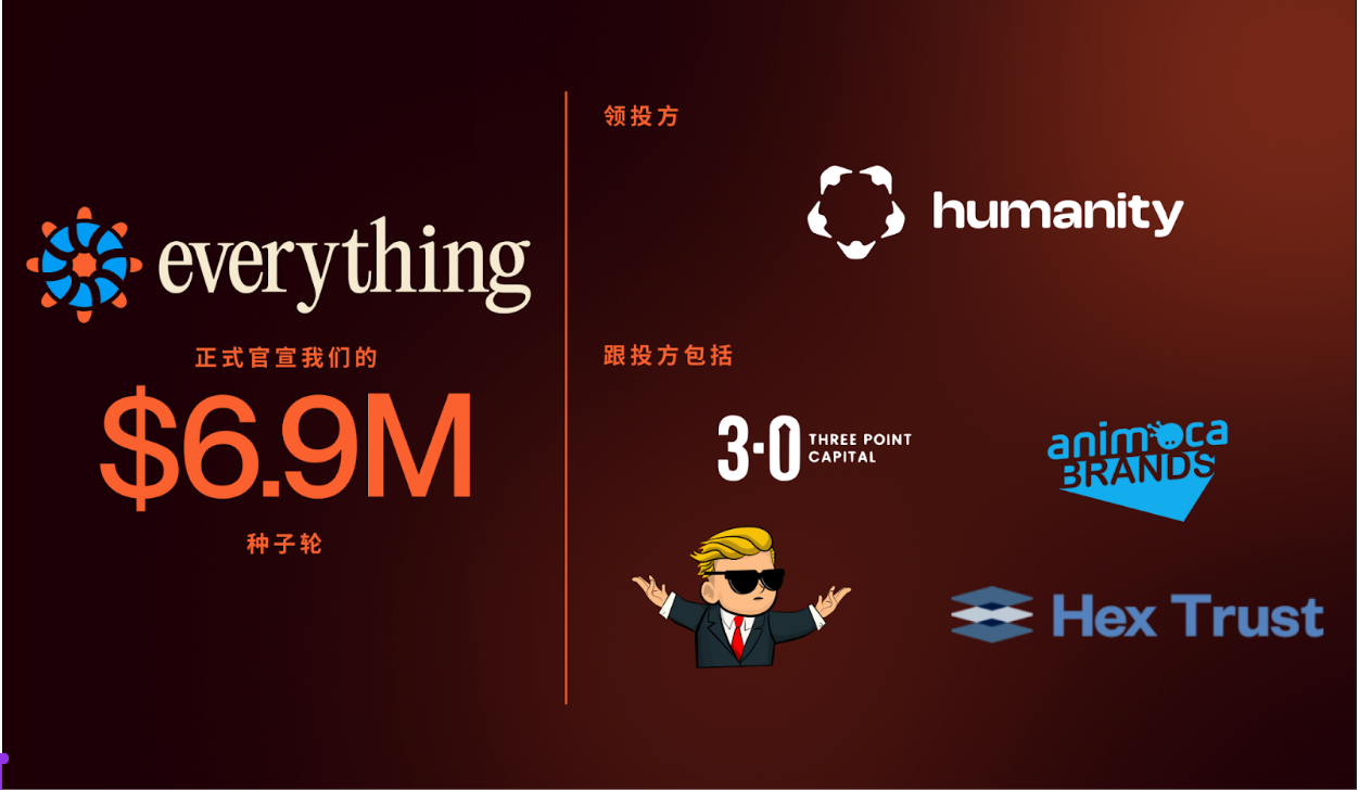 香港,2026 年 1 月 26 日 —— Everything,这个集永续合约、现货市场、预测市场及支付功能为一体的「一站式交易所(Everything Exchange)」,今天宣布完成 690 万美元种子轮融资。本轮融资由 Humanity 旗下风投部门 Humanity Investments 领投,Animoca Brands、Hex Trust、WallStreetBets 创始人 Jamie Rogozinski,以及 Three Point Capital 联合参投。