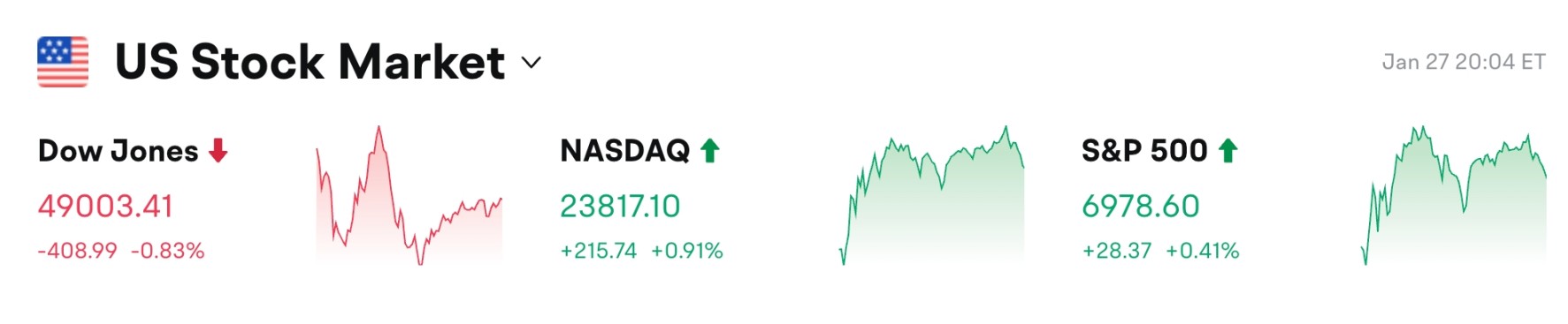 美股分化明显,标普纳指受科技股支撑创新高,但道指承压医疗板块;黄金银价飙升创纪录,受美元弱势及地缘不确定性驱动,外汇中美元指数创四年低,政治风险或加剧波动,依旧建议均衡各大类配置资产。