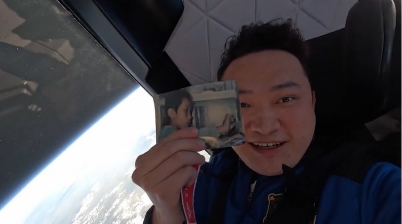 孙宇晨上太空后和儿时的照片合影