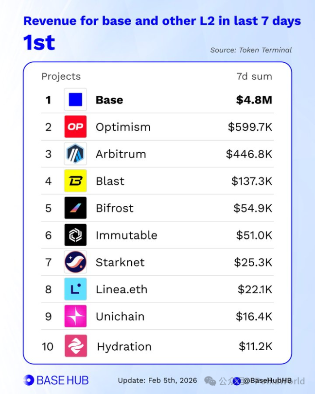 对比来看,Base 仍占据绝对领先位置,但值得注意的是,Polkadot 生态中的应用已开始以“可持续收入”而非补贴叙事出现在同一张 L2 收入榜单中。https://x.com/BaseHubHB/status/2019451438687305913