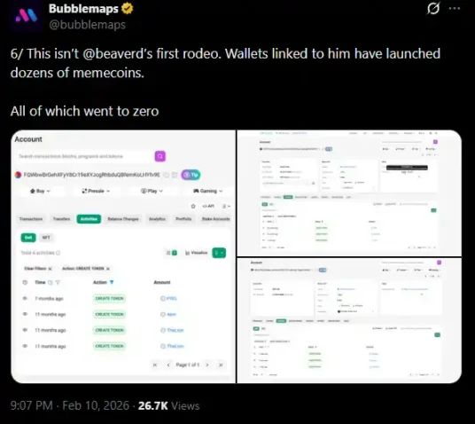 最后,Bubblemaps 还指出,所有跟踪到的 Beaver 相关地址,不止发了这一个代币,而是还有很多,并且统统都归零了。