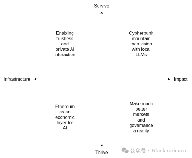 但 Vitalik 的愿景更为宏大。他认为以太坊能够为人工智能实现四个关键目标:
