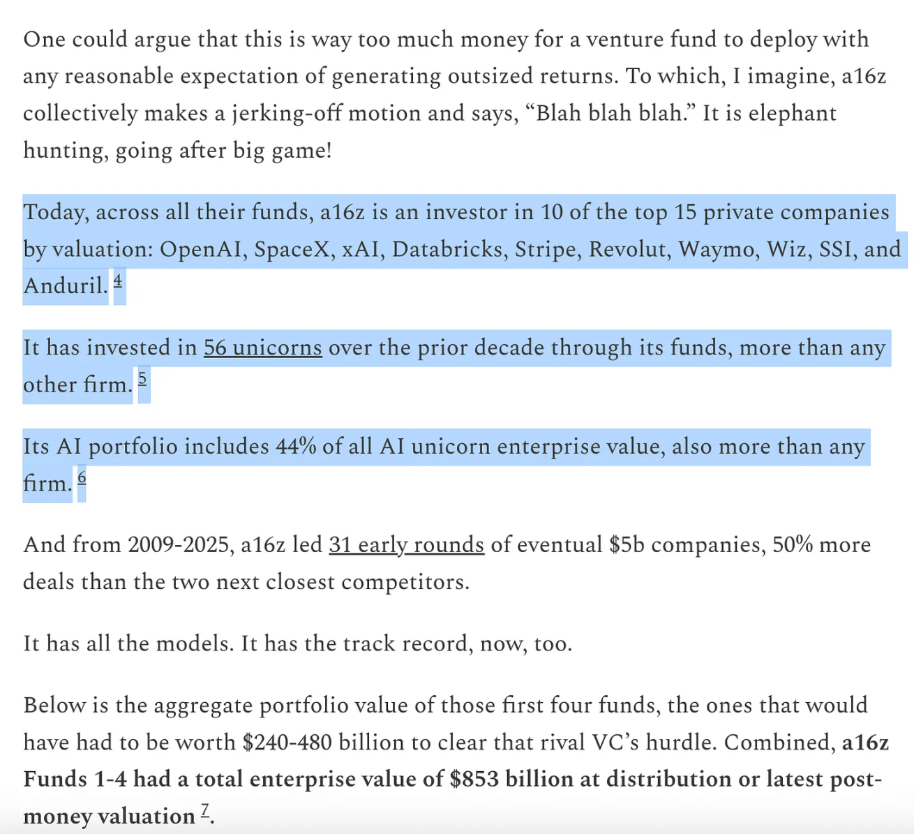 他认为,VC 行业正处于从「判断力驱动」向「赢得交易能力驱动」的范式转移中。只有像 a16z 这样具备规模化平台、能为创始人提供全方位支持的「巨型机构」,才能在万亿美元级别的博弈中胜出。