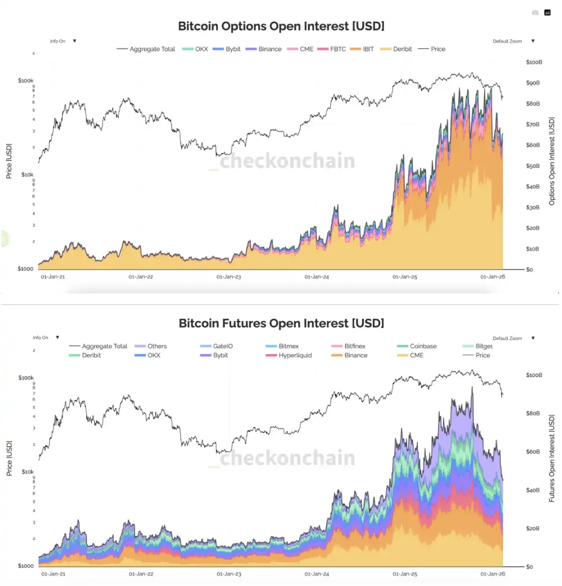 数据很说明问题。链上期权协议的交易量总和仅占 Deribit、币安等中心化交易所的千分之二不到,这还没有统计 IBIT 期权的数据。相比 Perp DEX 对 CEX 的凶猛侵蚀,链上期权严重掉队。