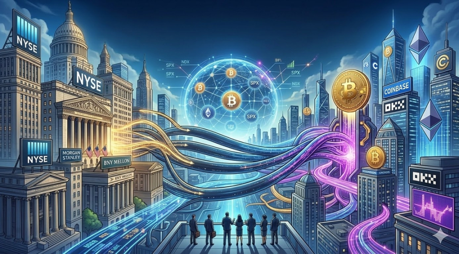 过去 24 小时内发生的两起标志性事件,彻底撕开了这层温情脉脉的面纱:其一,摩根士丹利正式确认选定 Coinbase 和拥有两百多年历史的纽约梅隆银行作为其现货比特币 ETF 的共同托管方;其二,纽交所母公司洲际交易所(ICE)宣布对头部加密交易平台 OKX 进行估值达 250 亿美元的战略投资,不仅获得了董事会席位,更将在数据获取和资产代币化(RWA)层面展开史无前例的深度绑定。