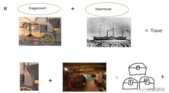 归纳下,第一层是技术进步,第二层是技术进步的用例,第三层才是场景,或者说用例的新玩法。举例子,蒸汽机是第一层,第二层是蒸汽机的用例—火车和轮船,第三层是在火车和轮船上做什么,这是新玩法。
