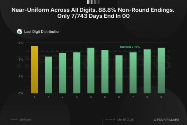 除链上证据外,747 天费用数据可接受四项标准检验,以验证财务数据真实性。单项检验虽不具决定性,但四项检验指向同一结论时,可信度显著提升。