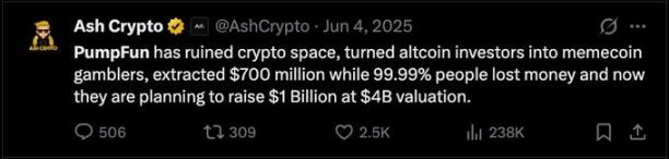 Pump.fun 真实日均 125 万刀收入 vs 原罪标签 + 内幕抛售,谁才是估值折价真凶?