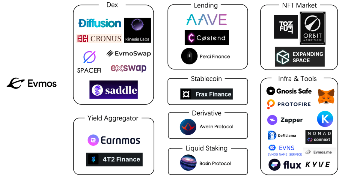 Evmos 的生态发展还处于早期阶段,但我们很高兴可以看到一个综合的生态正在发展,包括 Defi,NFT,DAO 等等。