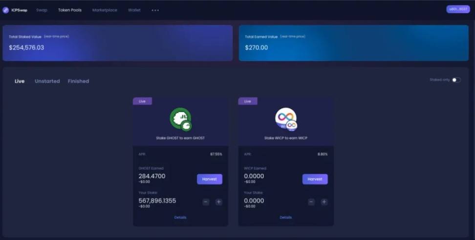 7 月 16 日:ICPSwap 上线 GHOST/WICP LP 池和单币质押池子