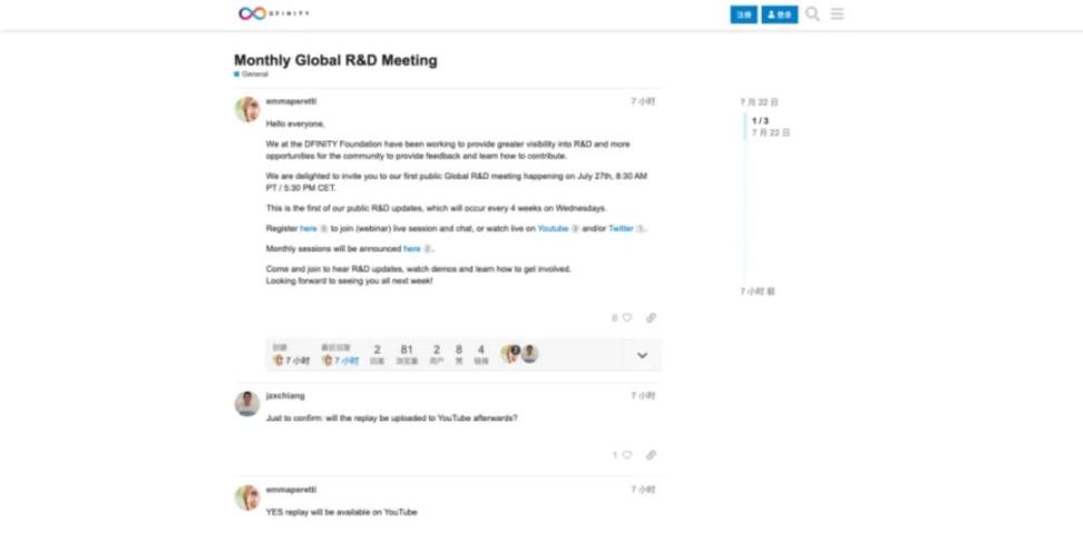 7 月 22 日:DFINITY 宣布每月全球研发会议