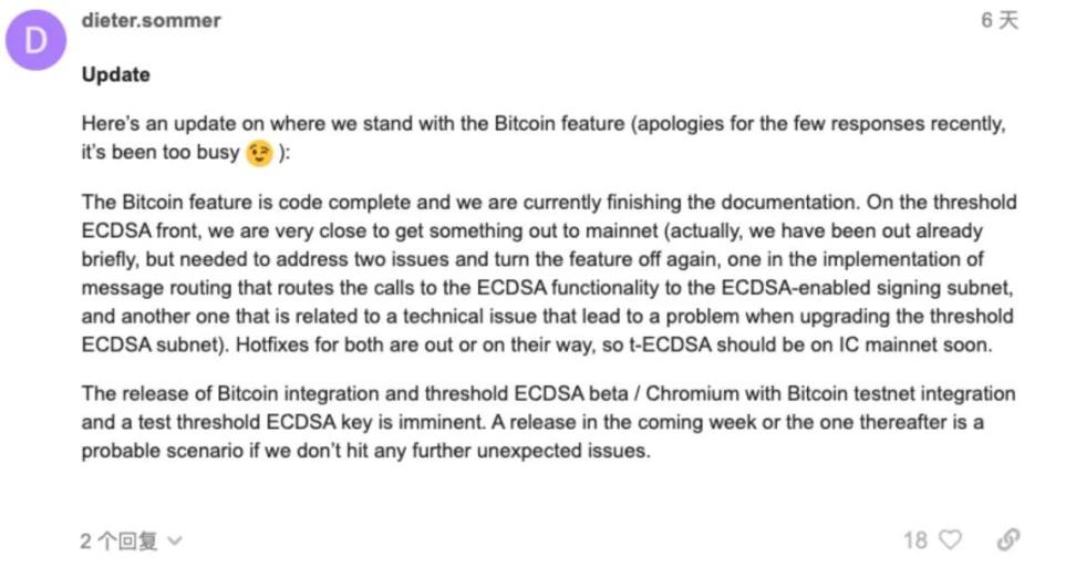 7 月 16 日:BTC 集成团队宣布最新进展 - 不出意外 BTC 测试网集成功能和门限 ECDSA Beta 版本会在未来一周或之后发布