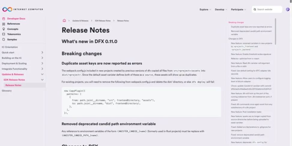 在 0.11.0 版本中功能更新包括 - 支持门限 ECDSA 签名、来自文件中的 Canister 调用、BTC 集成功能、安装后任务、Candid 元数据等。